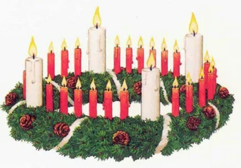 As with any great idea, it took off and many German Protestants began using these wreaths in their homes and schools. The wreath did shrink a bit. Only 4 red candles were used and sometimes a white candle was put in the middle and lit on Christmas.